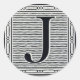 Block Letter "J" Woodcut Woodblock Inital Classic Round Sticker