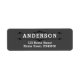 A traditional personalised design featuring classic slab serif name and return address text with retro ornamental decoration on a slate grey background.