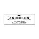 A traditional personalised self-inking stamp design featuring classic slab serif name and return address text with retro ornamental decoration.