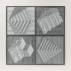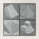Four mazes against a black, white and grey patterned background is a fun design for puzzle lovers.