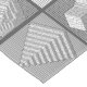 Four mazes against a black, white and grey patterned background is a fun design for puzzle lovers at birthdays and holidays.