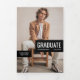 Stylish graduation announcement card and party invitation features a single oversized photo with "GRADUATE" as a large focal point on the front. Personalise the modern custom text with your grad's name, school, and class year. The inside of the card includes space for two more photos and all the ceremony and party details. One panel set aside for listing their accomplishments and sharing future plans. Customise the colours of the boxes on the front and back to match your school colours or coordinate with the photography. Available in red, orange, purple, green, blue, burnt orange, maroon, gold, and black. Matching products available.