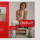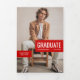 Stylish graduation announcement card and party invitation features a single oversized photo with "GRADUATE" as a large focal point on the front. Personalise the modern custom text with your grad's name, school, and class year. The inside of the card includes space for two more photos and all the ceremony and party details. One panel set aside for listing their accomplishments and sharing future plans. Customise the colours of the boxes on the front and back to match your school colours or coordinate with the photography. Available in red, orange, purple, green, blue, burnt orange, maroon, gold, and black. Matching products available.