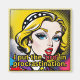 Add a touch of vintage fun with this pop art design featuring a blonde bombshell with humourous text. Perfect for adding a playful twist to your decor.