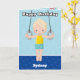 Design is brilliant - there is a male version and a female version of this cartoon and I bought both! You can personalize all the type on this card. I love these cartoon cards from Le Grand Art. I will be coming back to buy more. So pleased with the quality. Great colour and good quality cardstock.