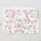 Bridal shower invitation features gorgeous blonde bride in white wedding gown and pink and white rose floral pattern on back.