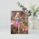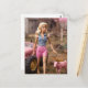 blonde doll on a post apocalyptic farm postcard