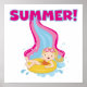 A cute design for summer, features a blonde haired girl in bathing suit and ring coming down the water slide and hot pink and blue text that reads SUMMER! Summer T-shirts, bodysuits, bibs, mugs, cards, bags, stickers, keepsakes, pillows, and much more.