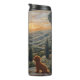 Blonde girl, walking mountains sunset with dog thermal tumbler