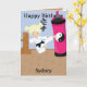 Design is brilliant - there is a male version and a female version of this cartoon and I bought both!  You can personalize all the type on this card.  I love these cartoon cards from Le Grand Art.  I will be coming back to buy more. So pleased with the quality.  Great colour and good quality cardstock.