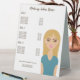 Personalizable price list template for makeup artists, beauty salons and cosmetologists featuring Destei's cartoon illustration of a beautiful woman who has long blonde hair and strong makeup. The girl's eyes are closed exposing her brown smokey eye eyeshadow, her cheeks have a little pink shade to them and her lips are pink. Personalise the template text areas with the details of your business.
