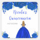 This Quinceanera sticker features faux glitter royal blue floral flowers and a beautiful princess with blonde hair and an elegant dress. This is perfect for a Quinceanera birthday party.