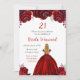 This birthday party invitation features faux glitter red floral flowers and a beautiful princess with blonde hair and an elegant dress. This is perfect for a birthday party.