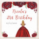 Blonde Hair Princess Red Floral Birthday Square Paper Coaster