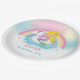 Cute Mermaid and Rainbow Unicorn Pool Party Paper Plates, featuring a pretty mermaid, cute unicorn floatie and a whimsical rainbow sky. Personalise them with your own wording easily and quickly, simply press the customise it button to further re-arrange and format the style and placement of the text. Exclusive design (c) The Happy Cat Studio.
