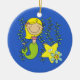 A smiling blonde haired mermaid underwater with the seaweed and yellow starfish, a cute ocean theme design for girls who love mermaids. Mermaid T-shirts, bodysuits, bibs, blankets, burp cloths, magnets, cards, bags, stickers, key chains, mousepads, pillows, wall clocks, keepsakes, and much more!