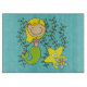A smiling blonde haired mermaid underwater with the seaweed and yellow starfish, a cute ocean theme design for girls who love mermaids. Mermaid T-shirts, bodysuits, bibs, blankets, burp cloths, magnets, cards, bags, stickers, key chains, mousepads, pillows, wall clocks, keepsakes, and much more!
