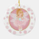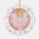 This design features a cute blonde haired Fairy with pink gown, magic wand and wings, flying on a super cute pink dot background.