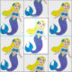 Design features an original marker illustration of a swimming blonde mermaid girl, with a bright blue outfit and purple tail.