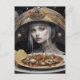 AI generated art of a beautiful woman that lives on a planet taco where delicious tacos are served every single day.
