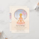 Serene and relaxed a young female sits in a yoga position. Behind her a large picture window with a view of a blooming tree. A delightful invitation for a birthday party or any yoga event.