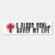Red cross with blood and dark grey text that reads A Blood Donor Saved My Life.