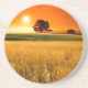 Wide angle view of a blood-red sunset over a golden wheat field. Generic background - no location