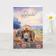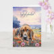 When you're missing a fellow dog lover, this mountain vista in colorful hues and featuring a lying down Bloodhound is sure to let them know you wish they were here with you.