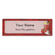 A glass of Bloody Mary cocktail on red seamless pattern background. Custom text fields for name and occupation.