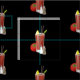 A glass of Bloody Mary cocktail with lemon slice. A whole tomato, salt and pepper. Seamless pattern. Custom background colour.