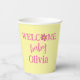 Add your own baby name to this baby shower design! Cute digitally hand-drawn flowers as the O in the word Welcome.