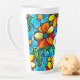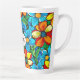This small latte mug features a vibrant floral pattern bursting with color—sunny yellows, warm oranges, deep reds, and refreshing blues set against a rich blue background. The tall, tapered silhouette highlights the artwork beautifully, giving the design a refined, café‑style look. At the center, an elegant oval label with the word BLOOM adds a touch of inspiration, celebrating growth, positivity, and everyday joy. The shape of the mug makes it perfect for lattes, cappuccinos, tea, or any warm drink enjoyed slowly and with intention.