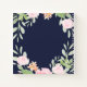 This trendy and beautiful inspirational notebook says "bloom where you are planted" in modern white script typography, with a watercolor pink floral wreath on a midnight blue background.