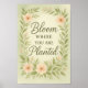 Brighten your space with this elegant “Bloom Where You Are Planted” poster. Featuring a soft sage watercolor background with delicate blush pink flowers and leafy botanical accents, this artwork blends natural beauty with timeless inspiration. Perfect for home, office, or classroom decor, it’s a versatile evergreen design that adds both positivity and elegance year-round.