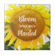 Ceramic tile featuring the photo image of a large, yellow Sunflower bloom along with inspiring quote that reads, "Bloom where you're Planted" printed in white, stylised lettering. A lovely, floral design! Select your tile size. Makes a great gift for family and friends!