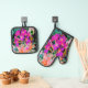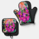 Blooming Abstract Magenta and Orange Flower Oven Mitt & Pot Holder Set