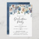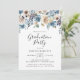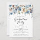 Our stunning Blooming Beauty graduation party invitations feature a floral border of white and blue flowers, lush greenery, and a modern calligraphy font. The reverse side of the invitation features a deep blue watercolor background. Personalise the floral graduation invitations by adding the graduate's name and party details for an invite that will impress your guests.