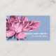 Magnificent business cards in Grey pink and blush palette for skincare professionals, holistic centre, massage studios, massage therapy, spas or wellness business featuring a watercolor blooming dahlia flower in dusty pink and blue flowers illustration with two line of custom text.
