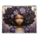 Keywords: African American girls calendar, Month's flowers illustrations, Blooming Beauties calendar, Seasonal floral artwork, Calendar with diverse beauty, Girls with month's flowers, Graceful floral illustrations, Vibrant seasonal images, Year-round floral joy, Monthly blooms and girls, woman, flower, purple black, person, girl,