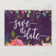 Blooming Chic Colour Editable Watercolor Floral Wedding Save the Date PostCard. With trendy brush script style font!