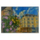 Blooming Corner captures the joyful rhythm of city life in full colour. A cascade of purple, yellow, and pink flowers spills from a building’s façade, framing a curved corner shop with Cyrillic signage and warm-toned rooftops. The sky above is a cheerful blue, dotted with stylised clouds that add a whimsical touch to the urban landscape.