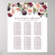 Sophisticated hand-painted floral wedding reception, party, or shower seating assignment chart for 8-10-12 top tables featuring watercolor corner wreath frame drops of burgundy marsala red and blush pink with navy blue accent flowers embellished by botanical laurel and dark red accents. From the "Boho Bloom" collection, this layout incorporates rich Bohemian wildflower bouquets with radiant flower blooms and eucalyptus greenery foliage. For other colours or matching products, please visit the JustFharryn Zazzle store, or contact the designer, c/o Fharryn@yahoo.com All rights reserved. #bohochic #zazzlemade