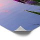 Blooming Irises by a Tranquil Lake at Sunset Poster