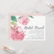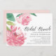 Chic bridal shower brunch invitation features watercolor peony flower illustrations in vibrant pink, accented with lush green leaves. Personalise with your bridal brunch details aligned at the right. Cards reverse to a solid pale blush pink.