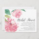 Chic bridal shower invitation features watercolor peony flower illustrations in vibrant pink, accented with lush green leaves. Personalise with your bridal shower details aligned at the right. Cards reverse to solid blush pink.