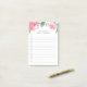 Chic personalised post-it note pad features a top border of watercolor peony flowers in vibrant pink with lush green leaves. Personalise with two lines of custom text in modern lettering; shown with "things to do" and your name. 11 lines with checkboxes help you keep track of all your important tasks!