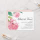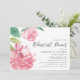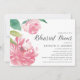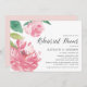 Elegant floral rehearsal dinner invitation features lush green leaves and watercolor peony flowers in vibrant pink. Personalise with your ceremony rehearsal and rehearsal dinner details aligned at the right.