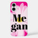 Blooming pink daisy flower custom iPhone 16 case. Custom phone covers with personalised name. Cool gift idea for friends and family.
