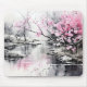 Blooming Sakura over River Ink Painting Mouse Mat
