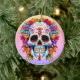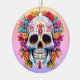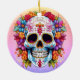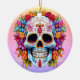 a vibrant and captivating artwork that blends the elegance of floral motifs with the bold symbolism of a sugar skull. Inspired by the traditions of Día de los Muertos, this design features an intricately decorated skull surrounded by a vivid bouquet of colorful flowers. Set against a radiant gradient background.